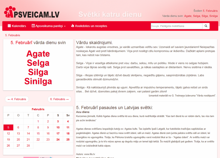 Apsveicam.lv - Greeting verse and name days calendar portal (since 2002 year)